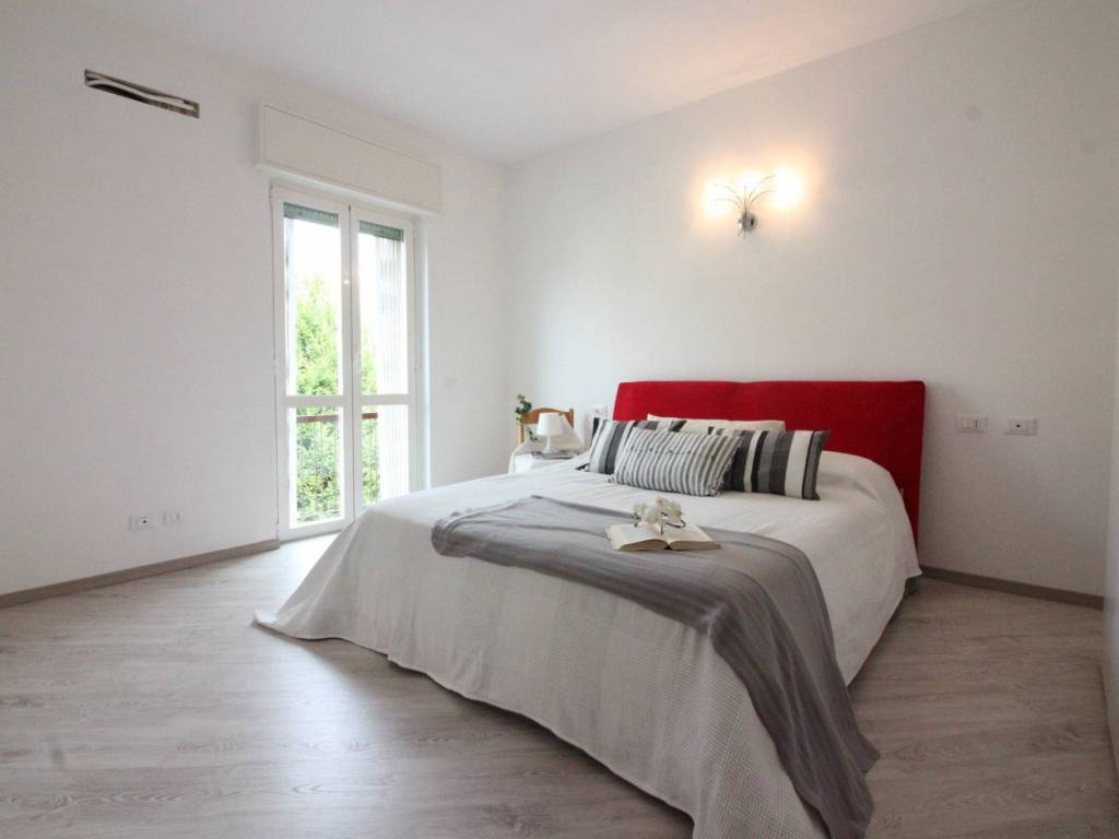 Bel trilocale ristrutturato nel 2016, esposto su tre lati che garantisco una buon giro d'aria, inserito all'interno di un rinomato contesto residenziale, circondato da ampio giardino condominiale. Presenta una grande cucina abitabile, due camere da letto, un bagno principale e uno di servizio/lavanderia, box doppio e ampia cantina con lucernario; due balconi di notevoli dimensioni si affacciano rispettivamente uno sul giardino condominiale e l'altro sul prato nel retro del condominio garantendo una zona di totale relax e repiro. Lavori eseguiti con la ristrutturazione : caldaia nuova con gestione da smartphone tramite termostato di nuova generazione, laminazione parquet nelle camere e rinnovamento di tutte le piastrelle, istallazione di un nuovo impianto di allarme, rifacimento dei bagni e sanitari. Possibilità di vendita con cucina in ottimo stato (anno 2016) marca Aran fatta su misura.